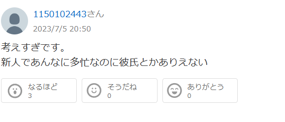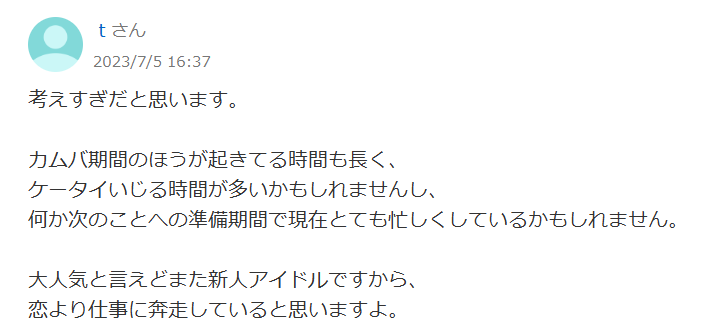 考えすぎ。あんなに多忙で彼氏とかあり得ない