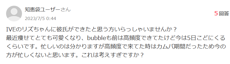 IVEリズちゃんに彼氏が出来た?痩せて可愛くなったし、多忙のカムバ期間よりbubbleが減ったから
