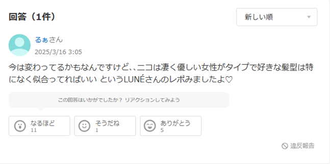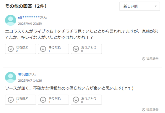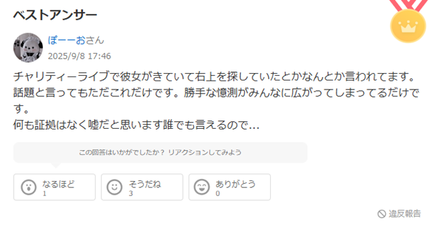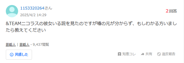 知恵袋でニコラスさんに彼女がいるのか質問している質問者に回答者が、