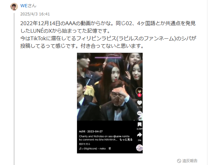 &TEAMニコラスさんとLapillusシャンティさんの噂は、