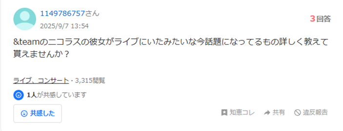 &TEAMニコラスさんとライブに来ていた彼女が噂になったきっかけは、